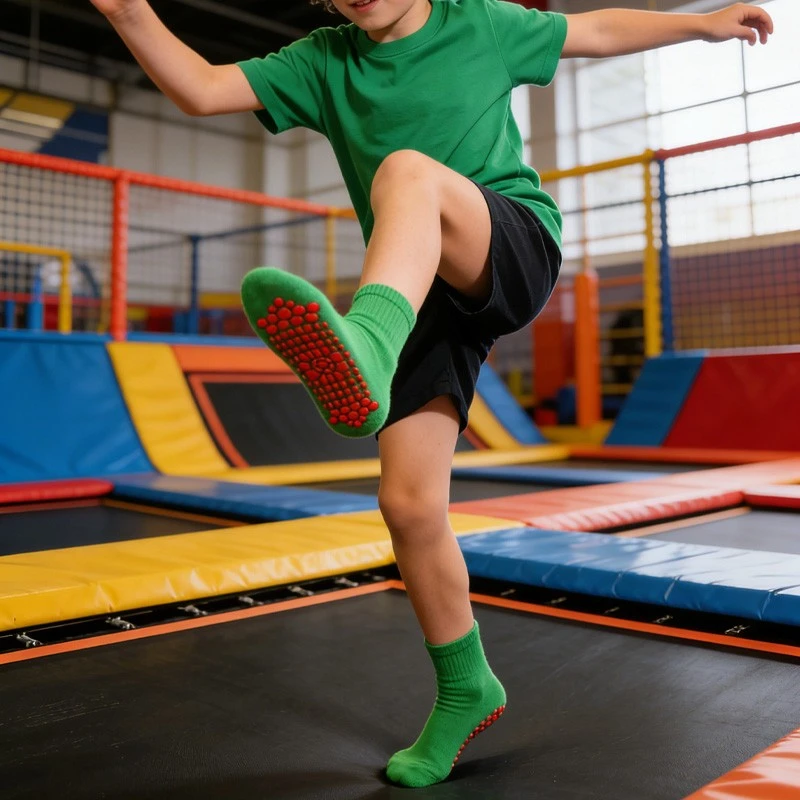 High-density Silicone Grip Dots:Full coverage of non-slip particles on the sole, strong grip to prevent slipping, ensuring safe jumping on trampolines.