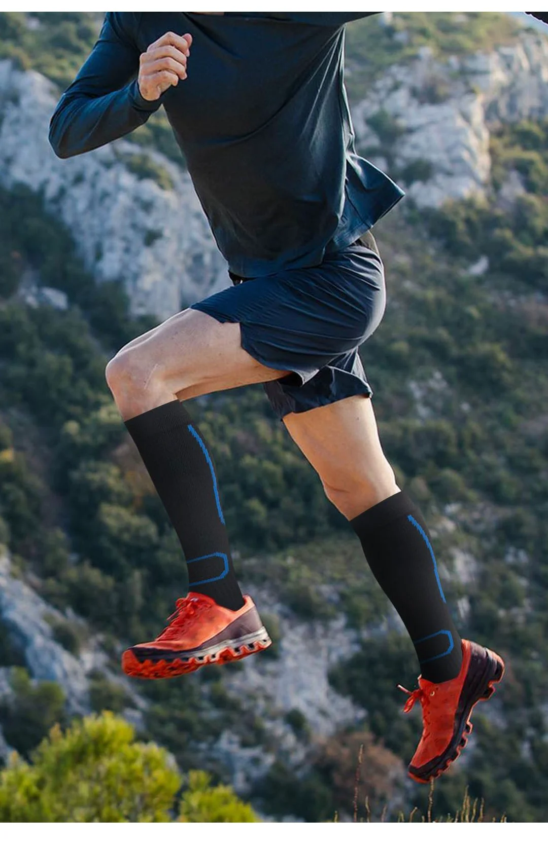 1. Circulatory Support, Fatigue Relief: The gradient compression design (strong pressure at the ankle, decreasing upwards) promotes blood circulation, effectively reduces swelling and soreness, and accelerates post-exercise recovery.