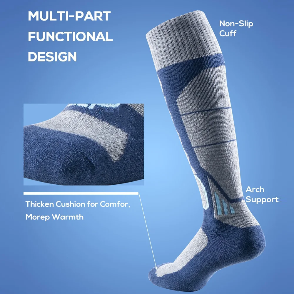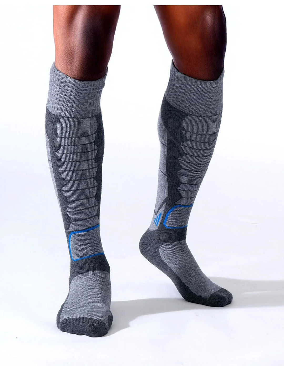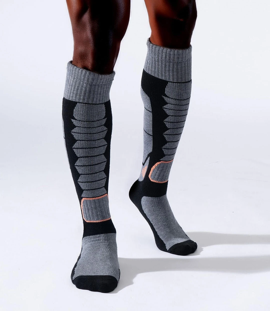 These ski socks use advanced materials (such as merino wool and acrylic) and knitting techniques to effectively lock in body heat and prevent frostbite in frigid conditions.
