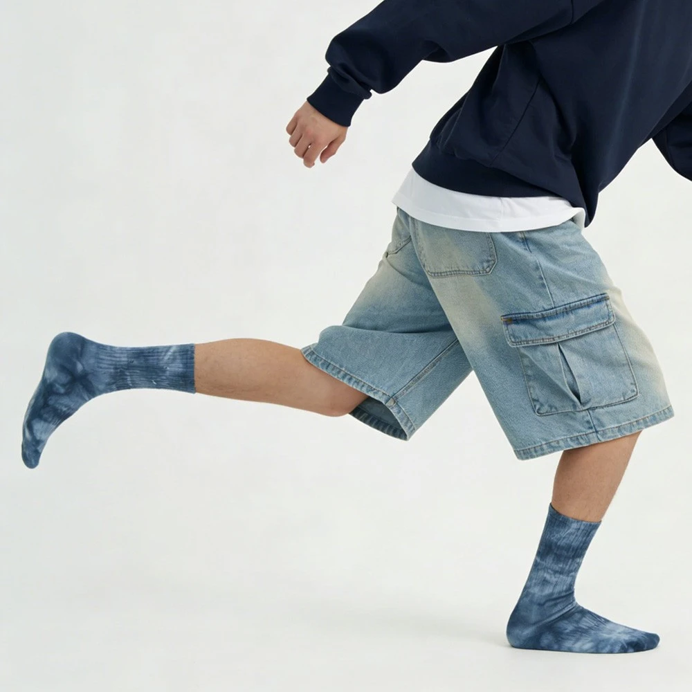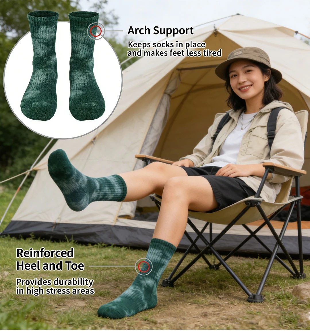 Durable & Comfortable Material:OEM tie-dye socks factory—Blended fibers (cotton, polyester, elastic) provide long-lasting wear and a snug fit, preventing slippage.