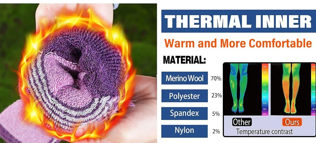 These ski socks use advanced materials (such as merino wool and acrylic) and knitting techniques to effectively lock in body heat and prevent frostbite in frigid conditions.